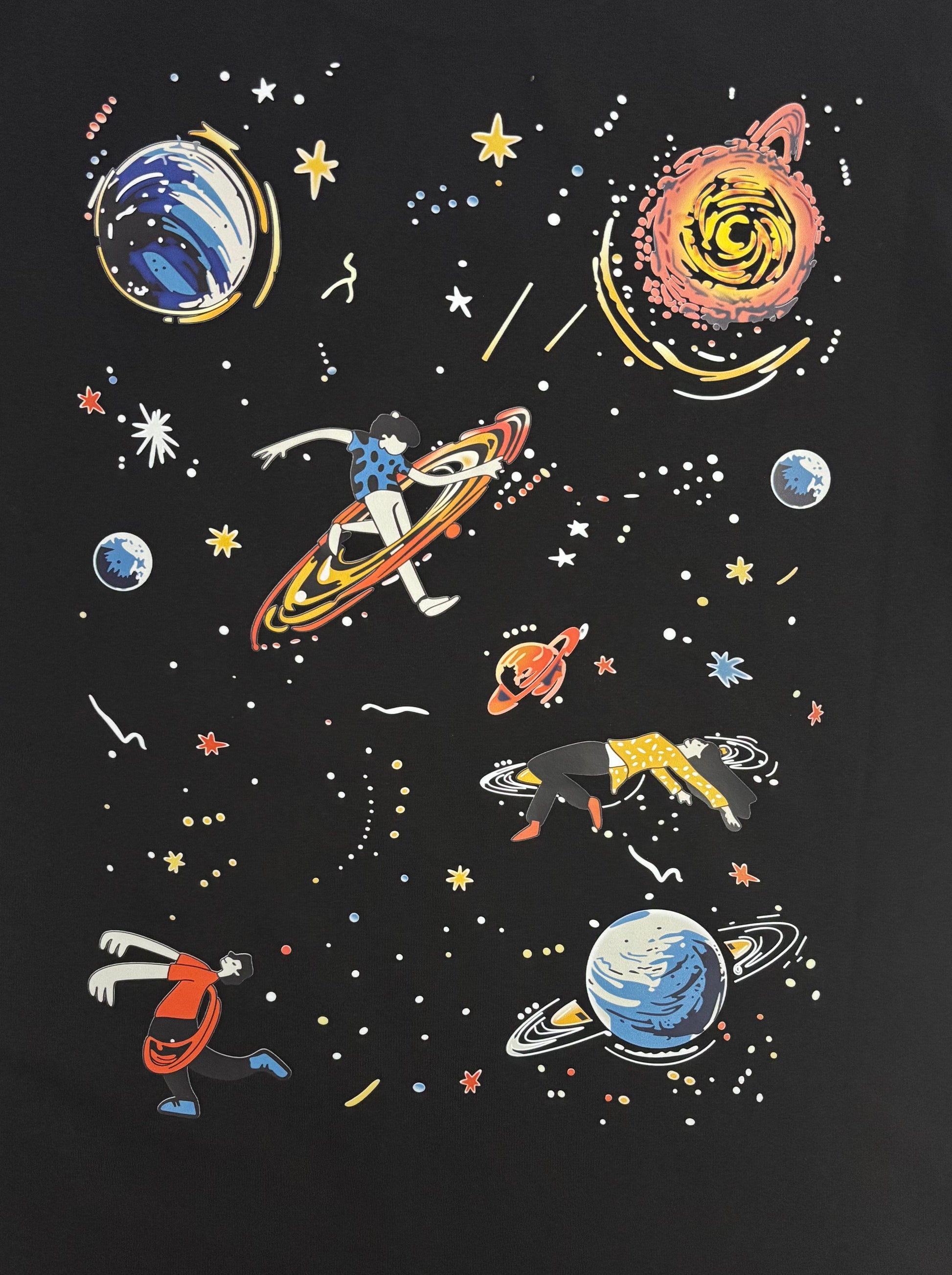 Black Cosmic Blaze Graphic Printed Oversized T-Shirt